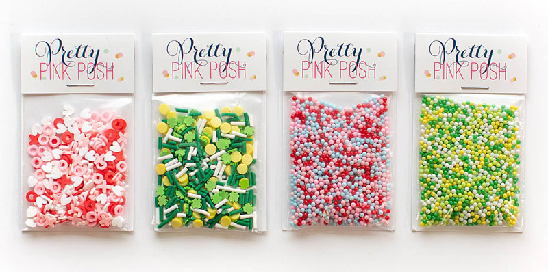 There are four new embellishments this month: Sweet XOXO clay confetti, Lucky clay confetti, Love Is Kind shaker beads, and Best of Luck shaker beads.