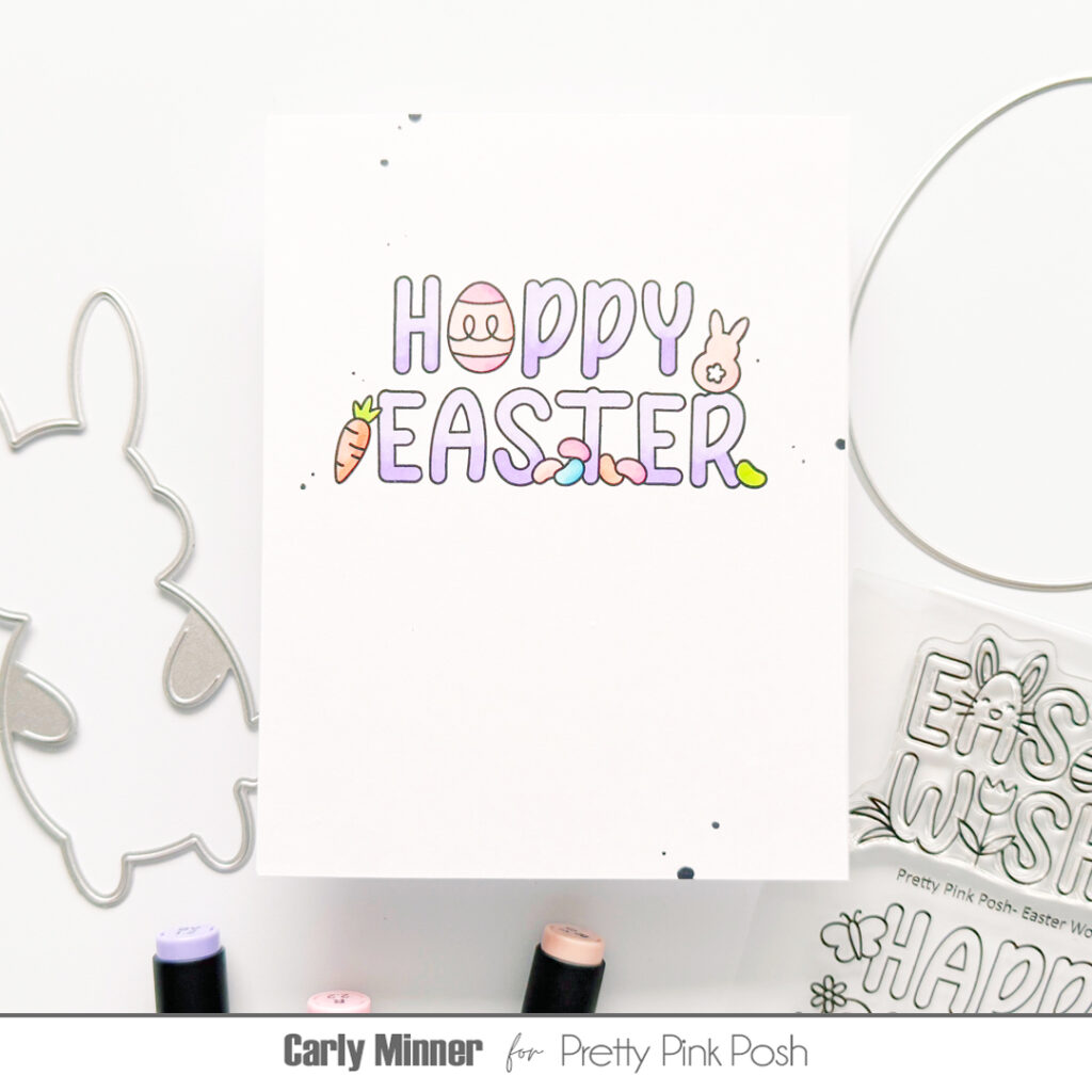 I used the new Easter Word Scenes stamps and coordinating dies in the center of my card and colored these darling images in used Copic Markers.