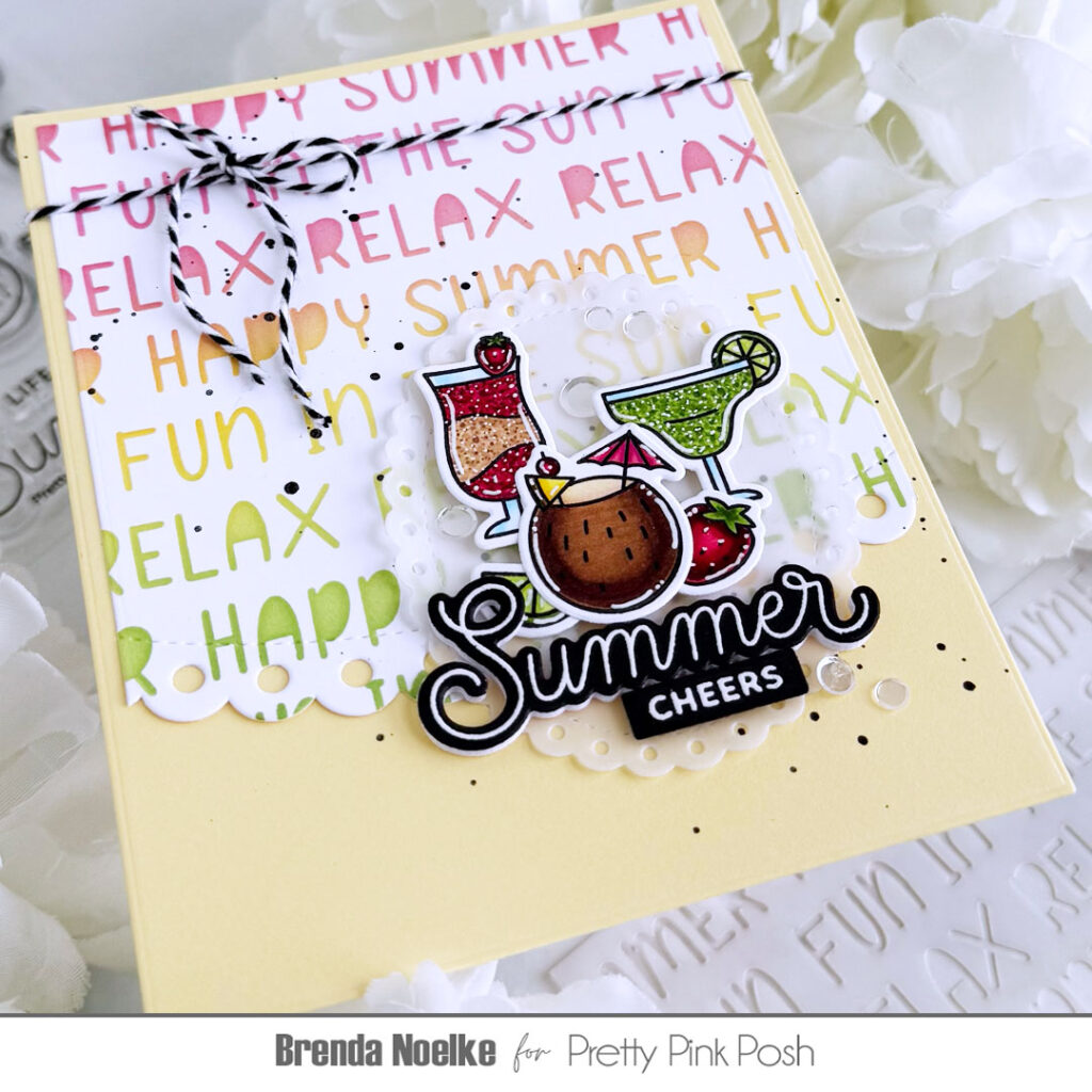 Finally, I added the sentiment that I white heat-embossed on royal blue cardstock and die-cut with the coordinating die. A few white gel pen highlights were the finishing touch before attaching the card front to a top-fold card base.