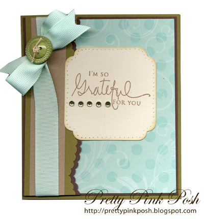 If you read my blog title today, you can get a tiny glimpse as to how I’m feeling right now. I am making huge progress, but there is still so much more to be done. Last night, for the first time in quite a while, I created a card just for fun. I needed a break of “must do” cards and had fun with this one. I went to one of my favorite color combos- kraft, dark chocolate, aqua mist and ripe avocado. Super yummy!