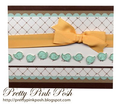 Today I have a card that I made several months ago. While trying to “clean” up some of my studio I stumbled across this card. I really love this color combination- I think I’ll need to play with it again! You probably noticed I used the Tweety Bird Border again. I seriously love this stamp to pieces!!