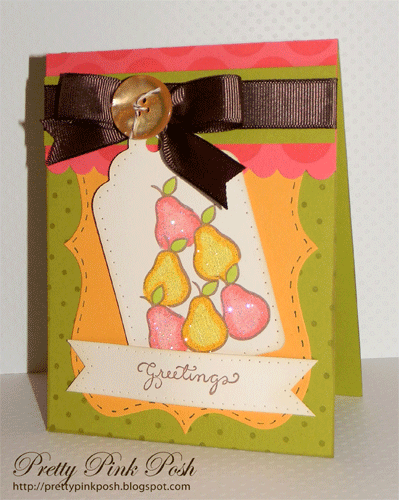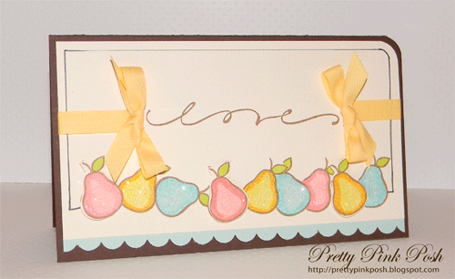 Today I have some yummy cards to share with you. I am totally in love with the Small Pear and Apples & Pears stamp set. When we (the gals at the DeNami Design office) were planning the release, I was beyond ecstatic that we were releasing some yummy fruit stamps. As you know, I love the apple stamps, but I equally love the pear ones.