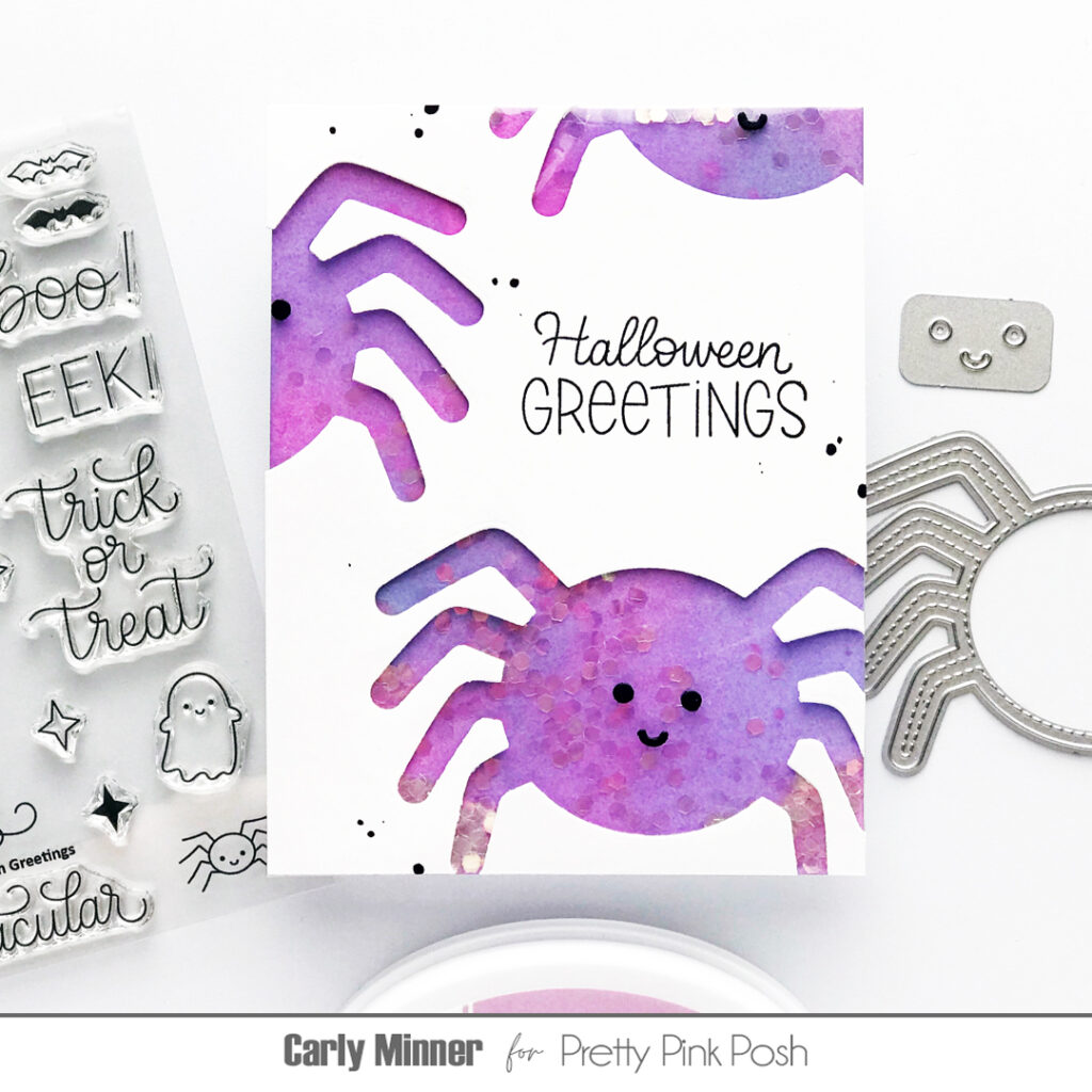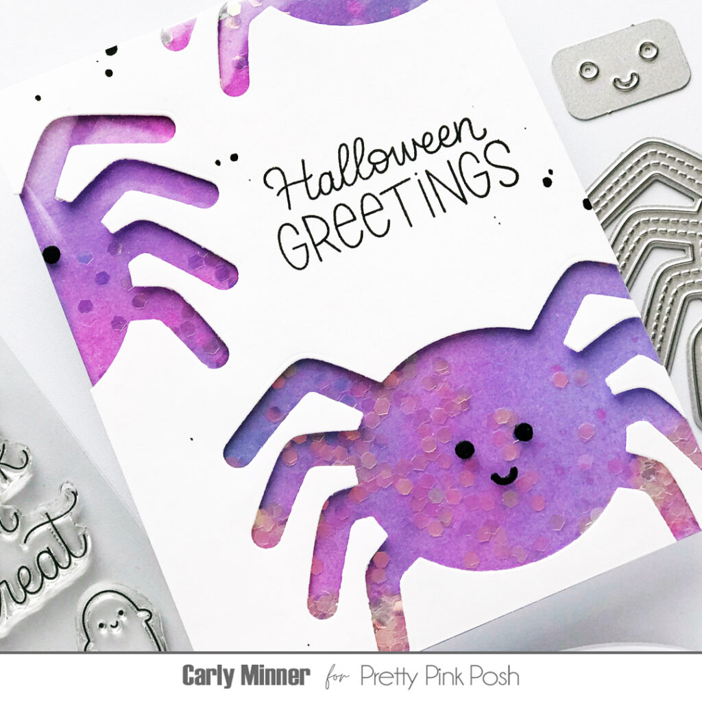 Pretty Pink Posh always makes the CUTEST Halloween goodies and the latest release does not disappoint!!! The Spider Shaker is just adorable!!! I love the clever design of all of PPP’s shaker die sets because not only can you create a shaker container but you can also use the large negative space for shaker windows!
