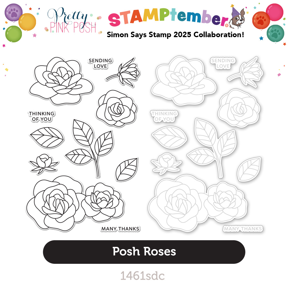 We are excited to announce we are releasing an exclusive, limited edition stamp set for STAMPtember® over at Simon Says Stamp called Posh Roses. They have the individual stamp set, and a stamp/ coordinating die combo.