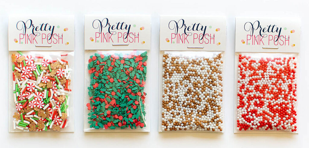 There are four new embellishments this month: Holiday Gingerbread Mix, Holly Berries Mix, Gingerbread Shaker Beads, and Candy Cane Shaker Beads.