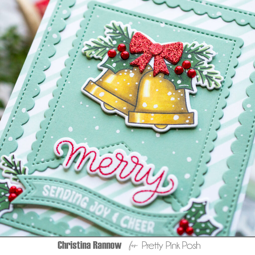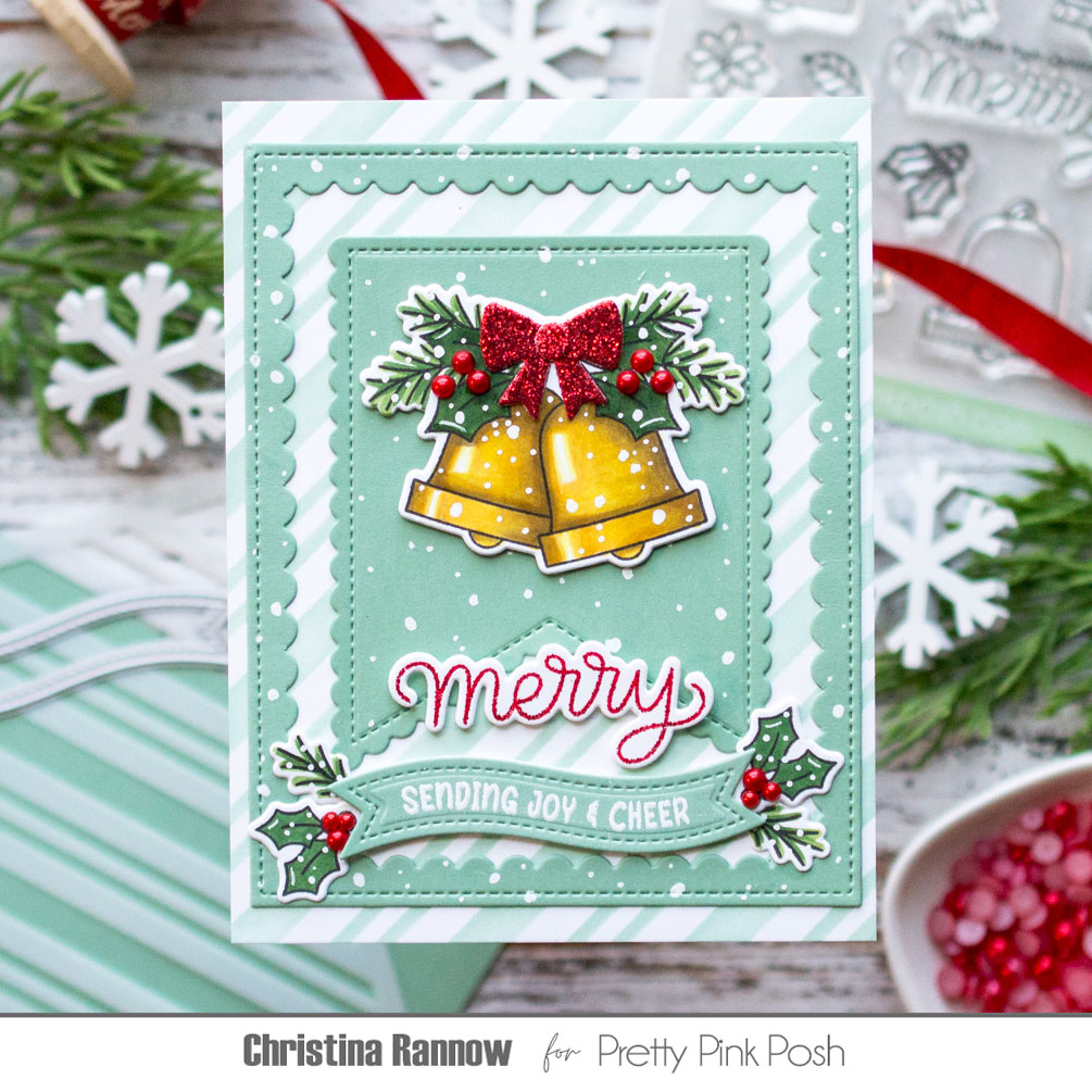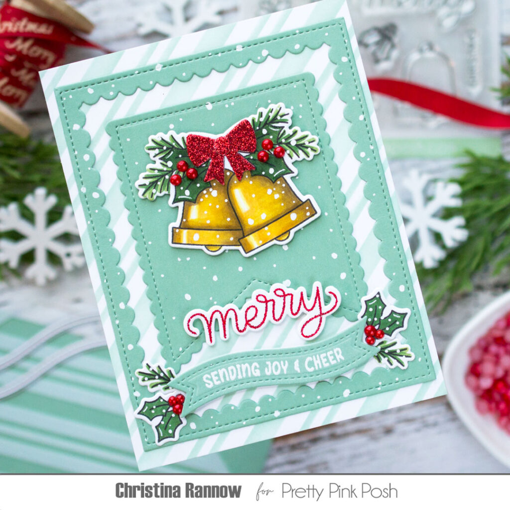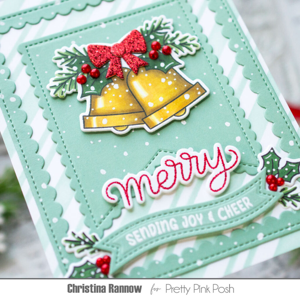 Hello! Christina here to share an elegant holiday card with you featuring the beautiful new stamp set, Christmas Bells. The images in this set are perfect for any holiday card or even for making a set of tags. I added some festive embellishments to my card design for a little extra sparkle and added a new Christmas Banner Greetings to complete this joyful card design. Let’s get started!