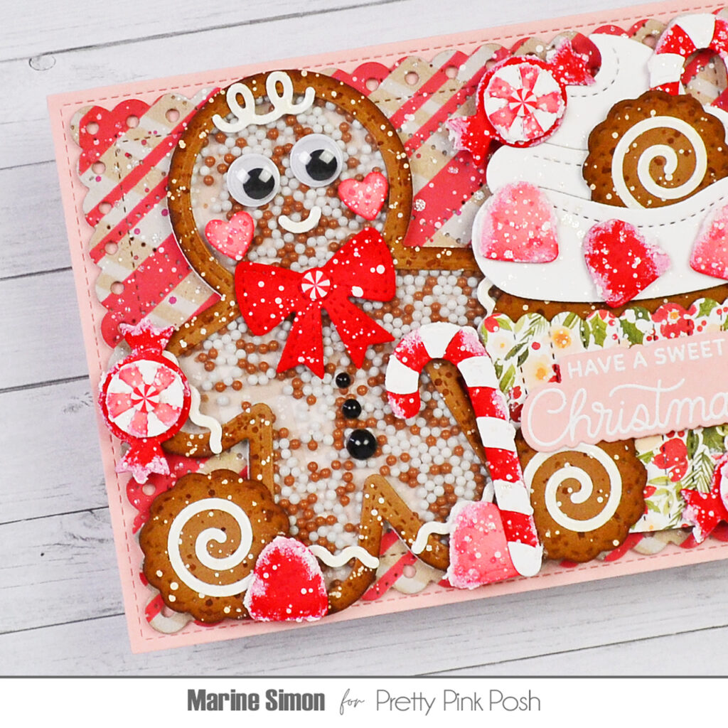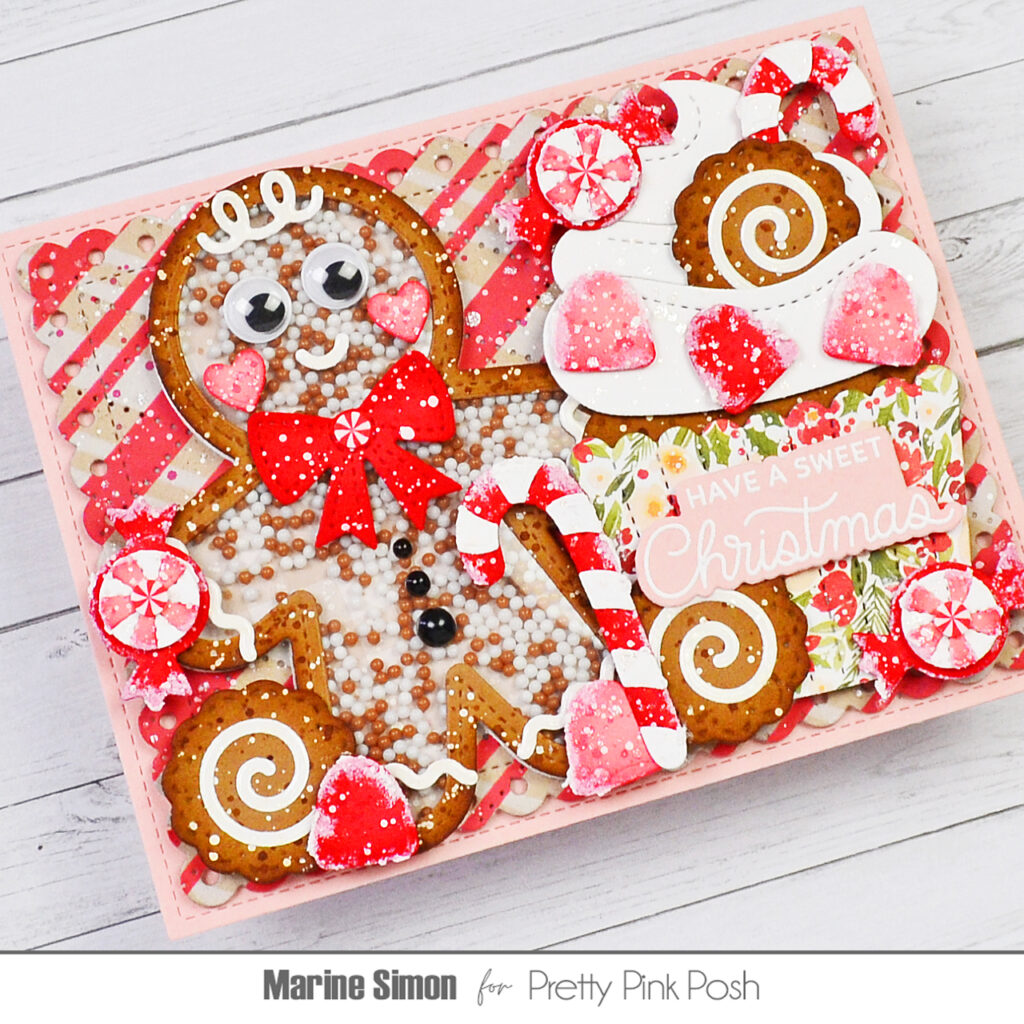 Hello crafty friends, Marine here, I’m super happy to be back with this bright and cheerful holiday card featuring a mix & match of items from the holiday release and “older” ones, including the new Gingerbread Shaker, which is so amazing! I’m a big fan of the Pretty Pink Posh Shaker Collection, so I had to feature this cute little guy on one of my projects.