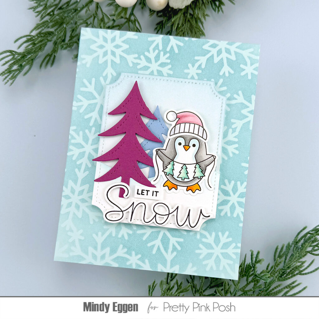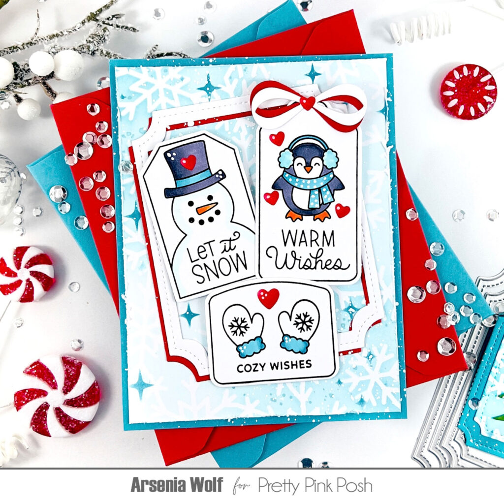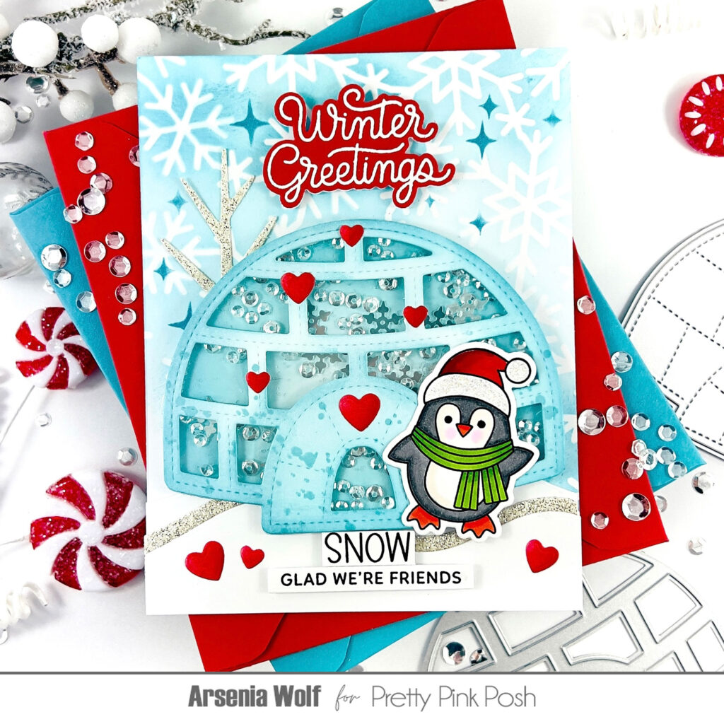 For my first frosty creation, I reached for the new Igloo Shaker Die, Penguin Friends stamp set (with coordinating dies), Let It Snow stamps, and Winter Tags — a perfect combo for a snow-filled celebration!