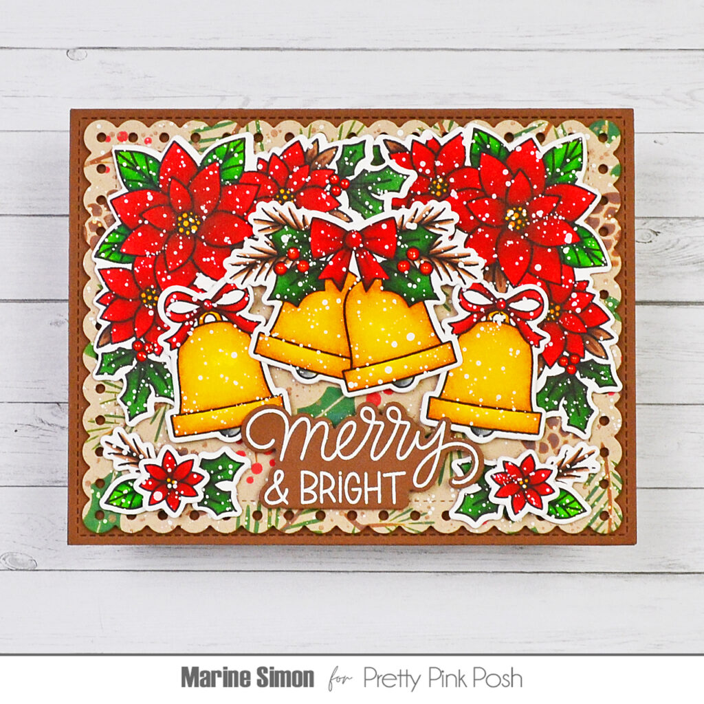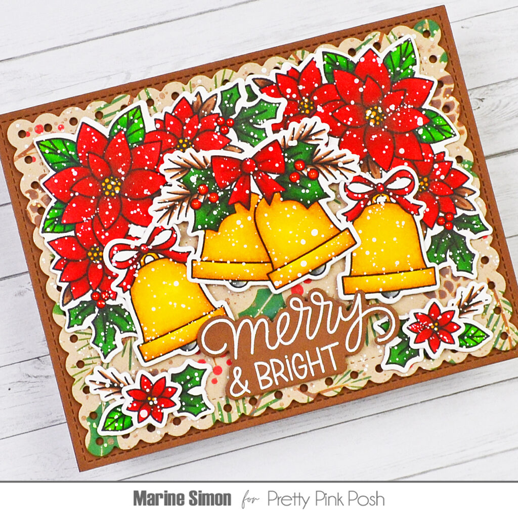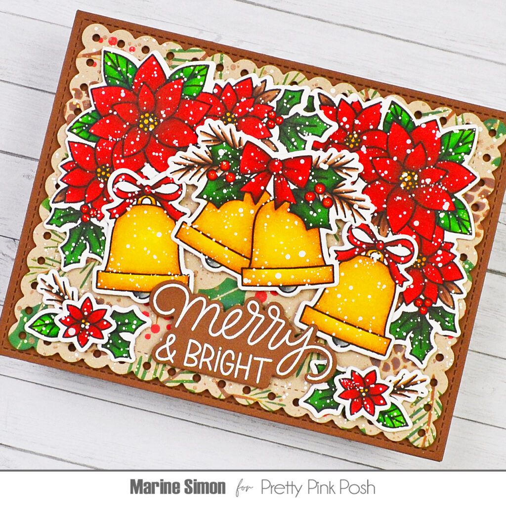 Hello crafty friends, Marine here, I’m thrilled to be back on the blog with this bright Christmas card. When it comes to holiday cards, I love all the styles, whether it be with die cuts only, cute critters or elegant themes, I like them all! For today’s card, I went for an elegant themed card featuring stuff from the Christmas release like the Christmas Bells and previously released items like the Poinsettia Corners. I think that these two are just the perfect match!