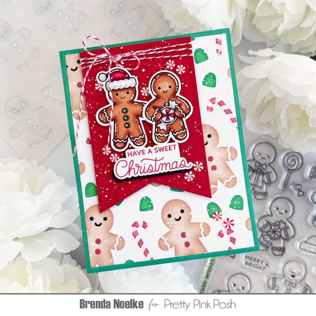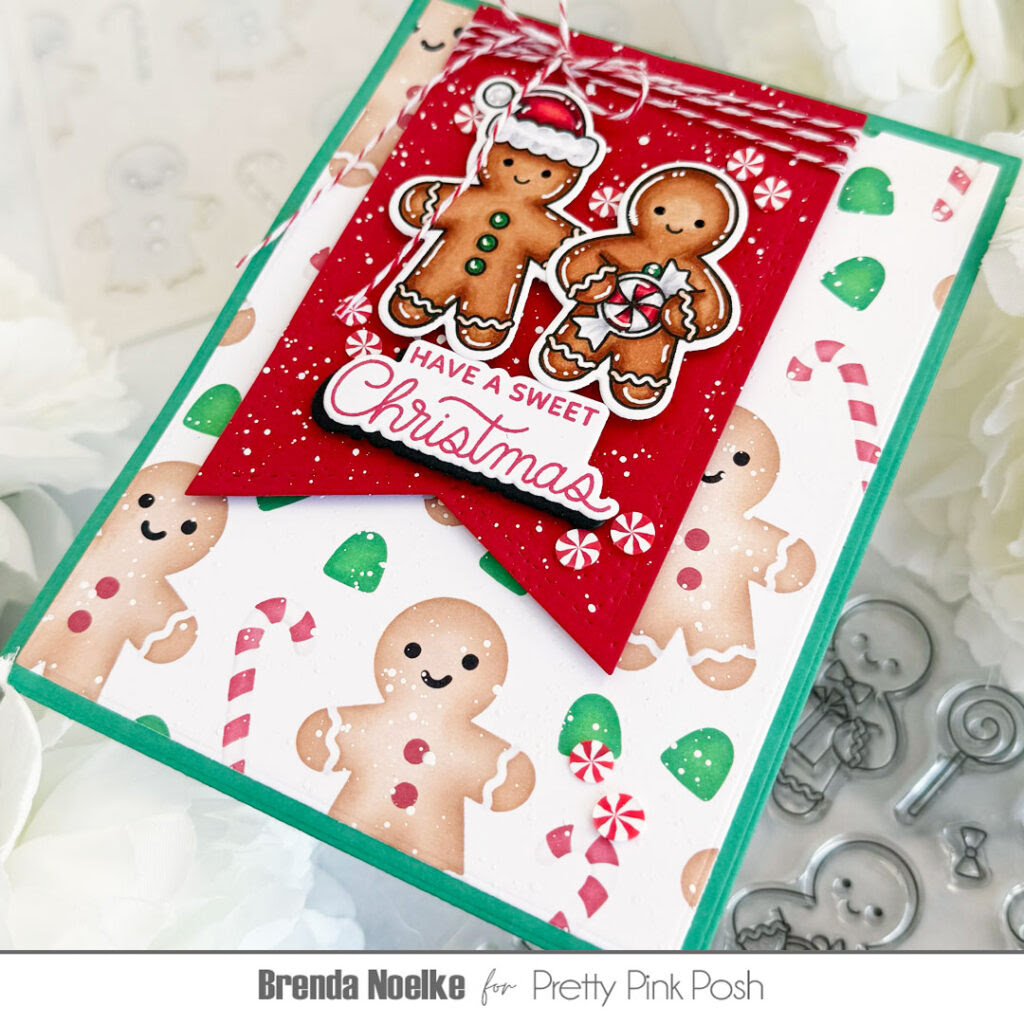 Hello, crafty friends!! Brenda back sharing a “sweet” Christmas card featuring the adorable Gingerbread Friends Stamp Set and the Layered Gingerbread Stencils from the holiday release!