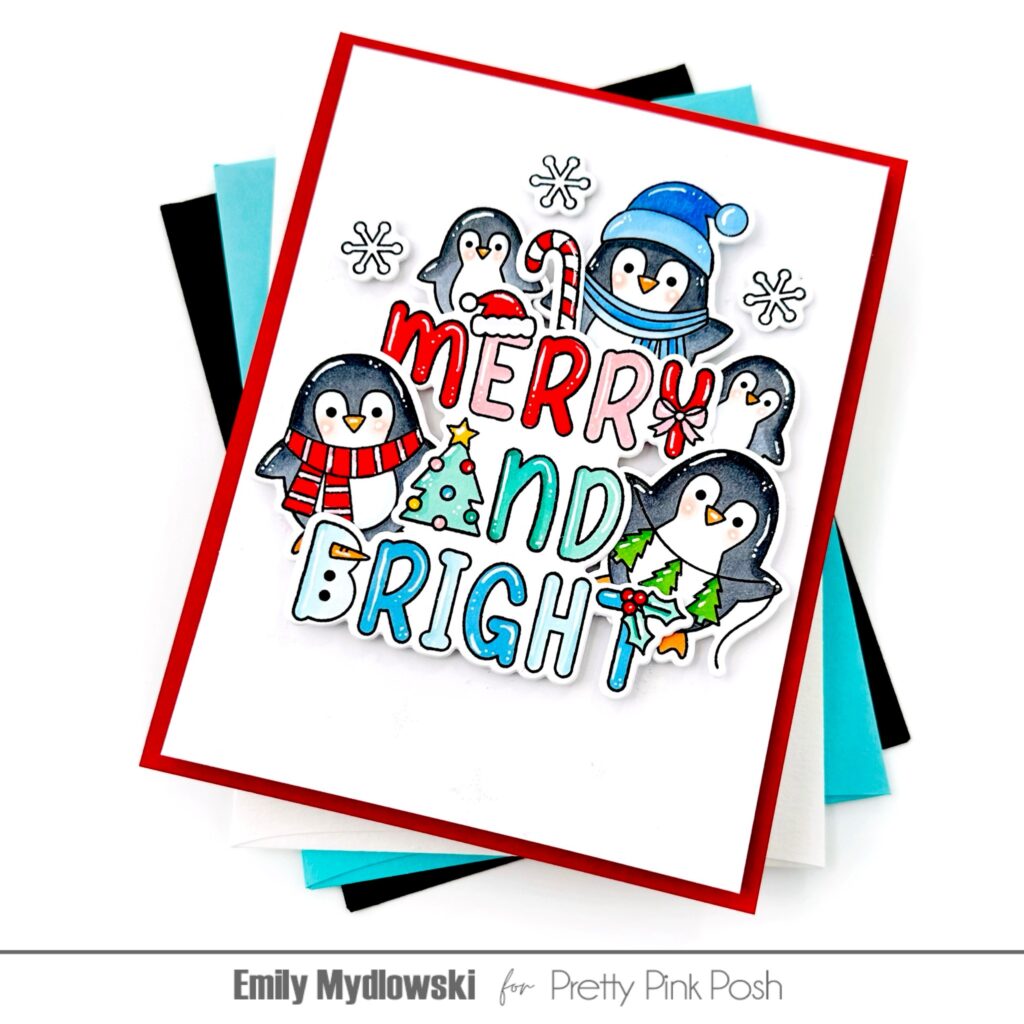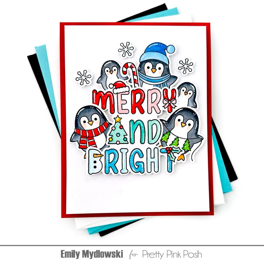 Hi Crafty Friends! It’s Penguin-ing to look a lot like Christmas! Emily Mydlowski here with you today sharing a bright and cheerful holiday card using the A-D-O-R-A-B-L-E Penguin Friend Stamp Set with Holiday Word Scene Stamp and Coordinating Dies.