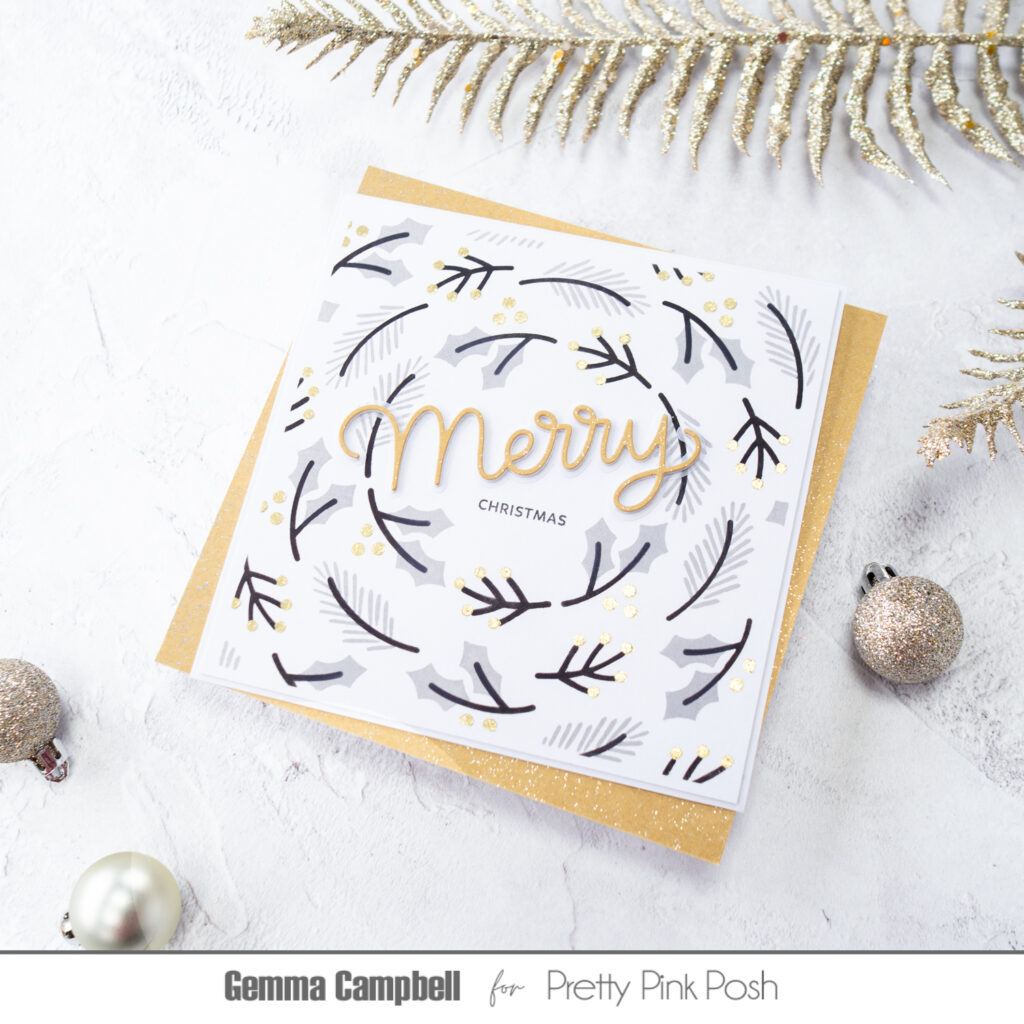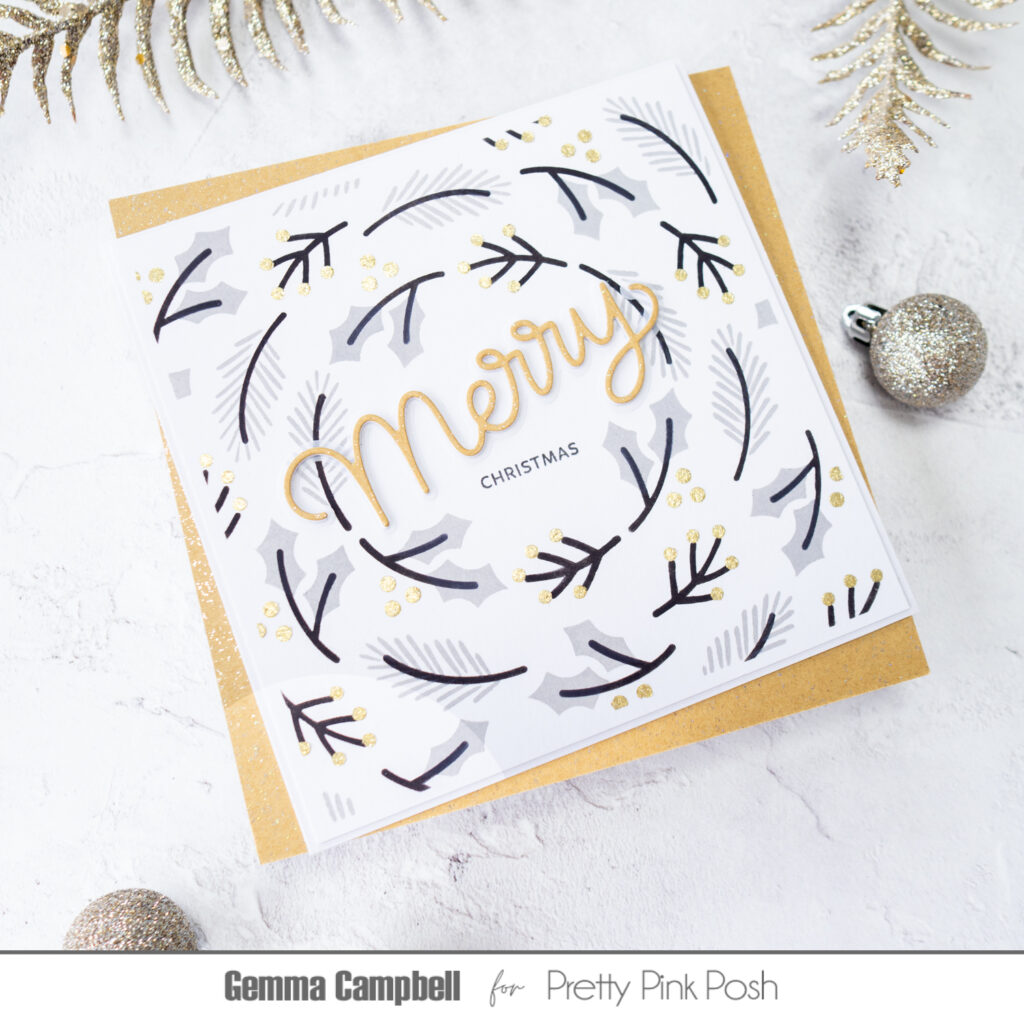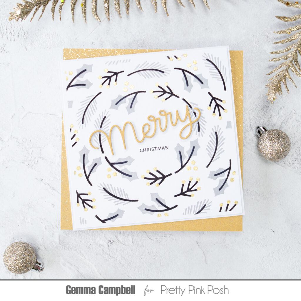 Hello, Gemma here today to share a card with one of my favourite colour schemes for Christmas – grey, black and gold.
