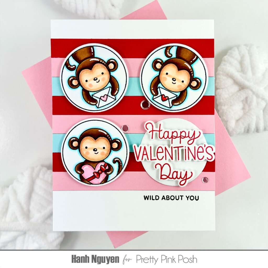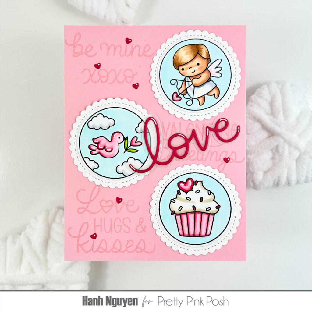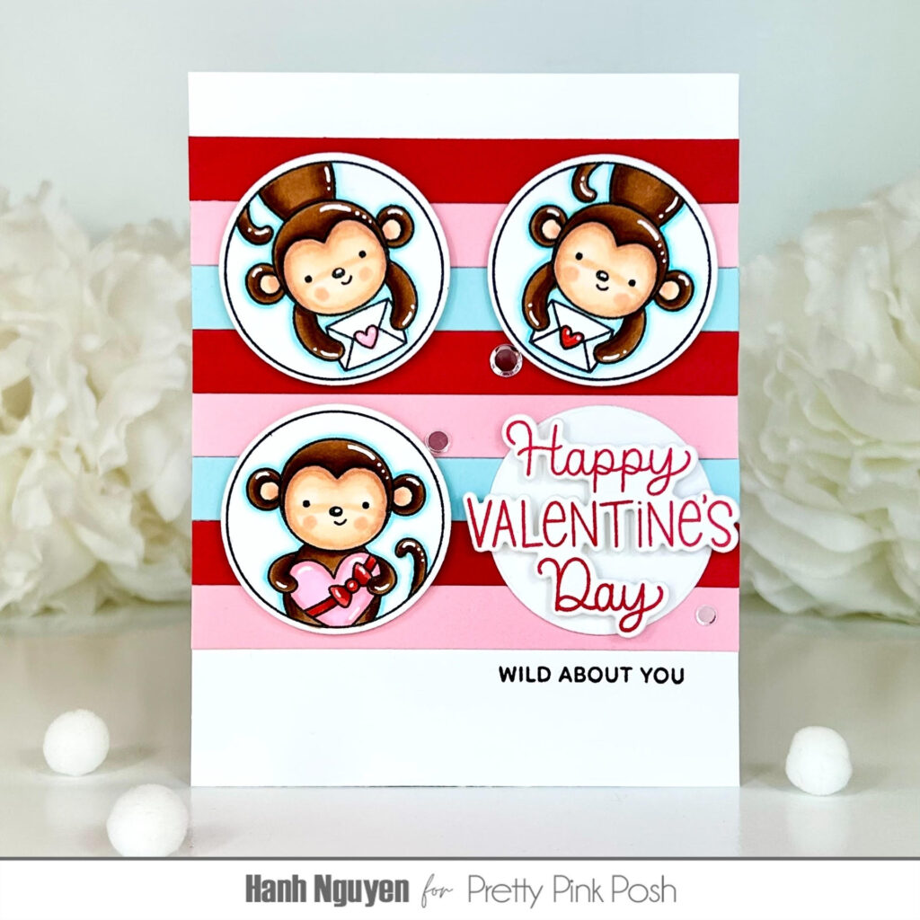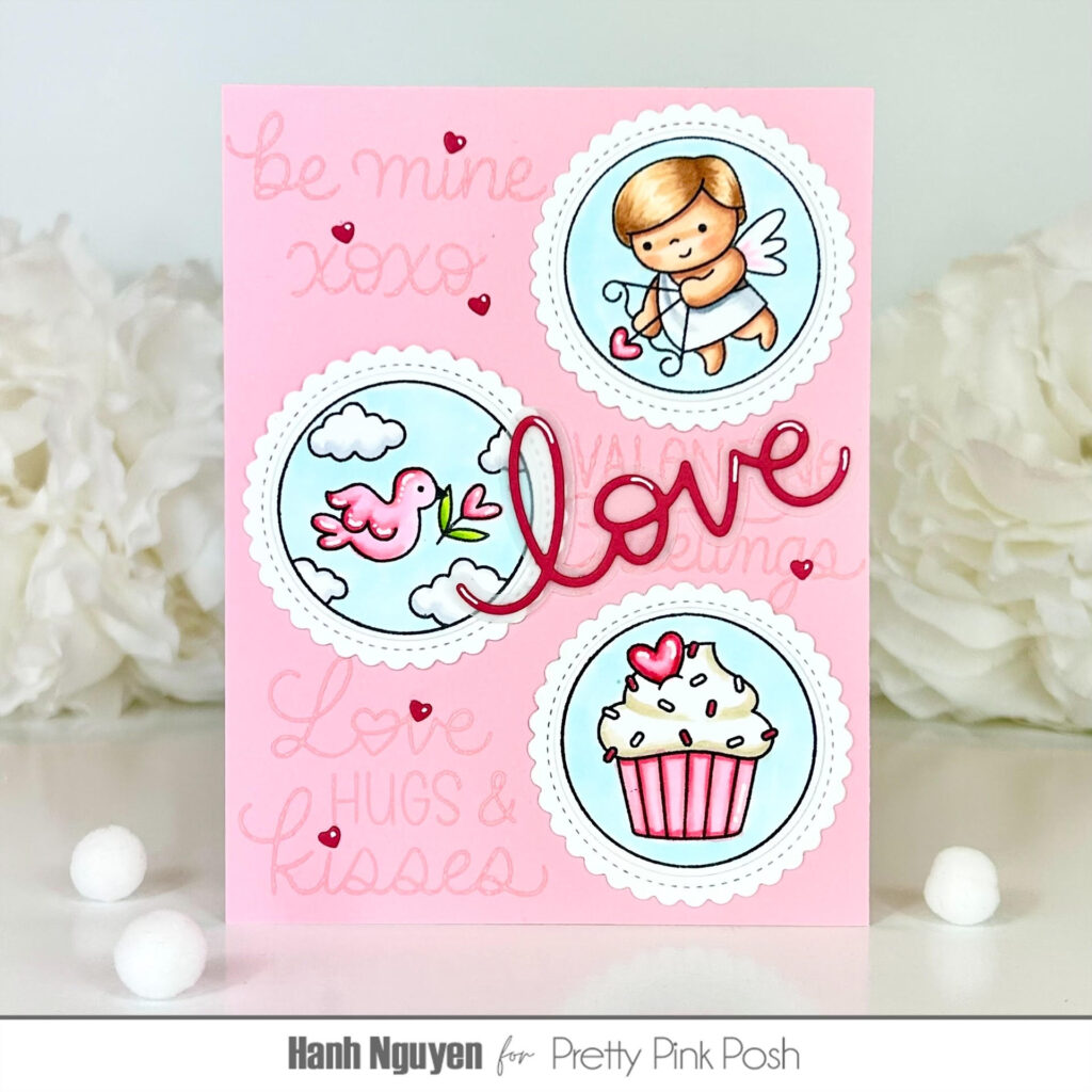 Hello Crafty Friends! It is Hanh here with you today. Happy Valentine Theme Week! I have two cards to share with you featuring the adorable Valentine Circles and Valentine Greetings sets. I love how versatile these two sets are. With the exception of the two sentiments that specifically say “Valentine”, these sets can be used just about any time of the year to send some love. So let’s get started.