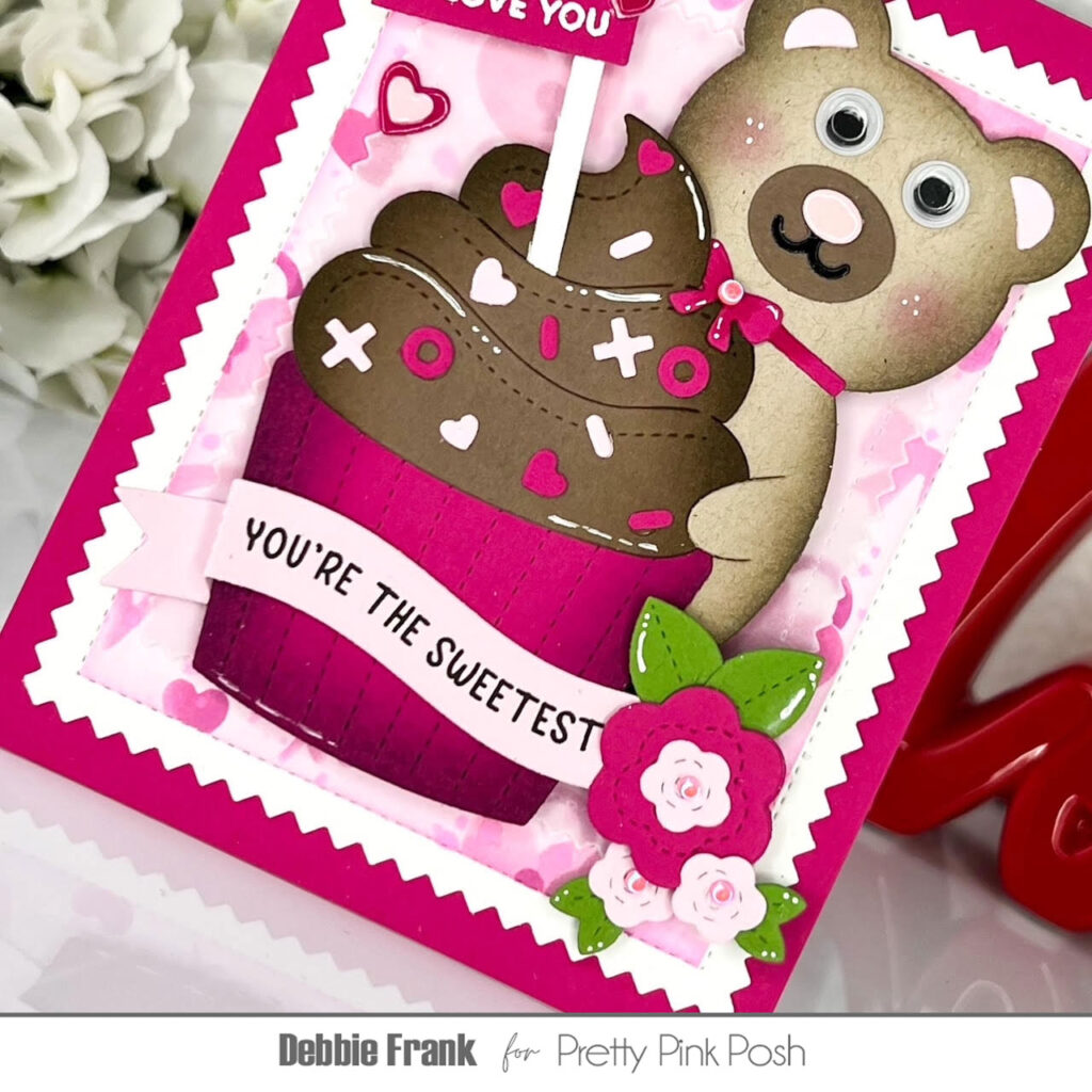 Today, I have the Big Valentine Cupcake Dies with the new adorable Bear Holder Dies. I just had to have the sweet bear holding and popping out from behind the cupcake!