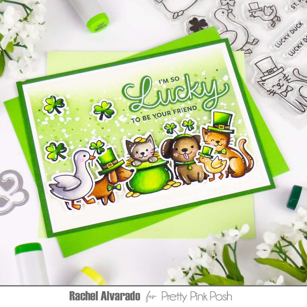 Hello crafty friends! Rachel here with a festive card featuring the new Lucky Animals Stamp Set.