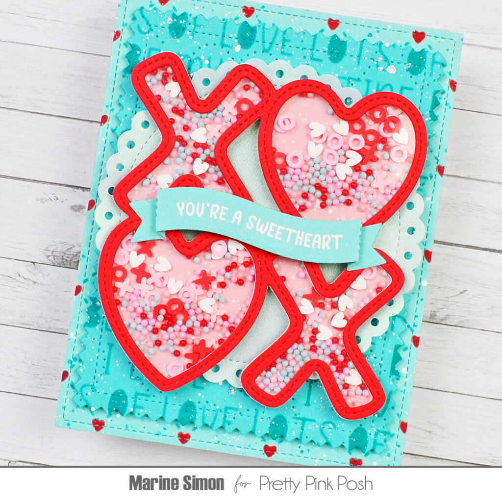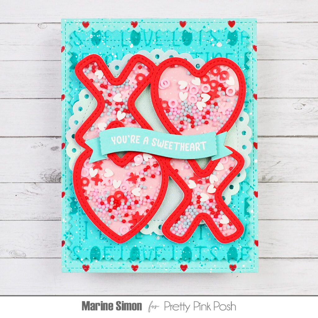 Hello crafty friends, Marine here, how exciting it is to be back with this shaker card showcasing items from the January 2026 release, including the amazing Xoxo Shaker die. I love shaker cards, they’re just so easy to put together, and they’re even funnier to build when Pretty Pink Posh has such an amazing shaker dies collection and the most beautiful shaker accessories ever. Speaking of which, the Love Is Kind shaker beads color palette is my favorite when it comes to Valentine cards, so I was very excited to create this Xoxo Shaker card.