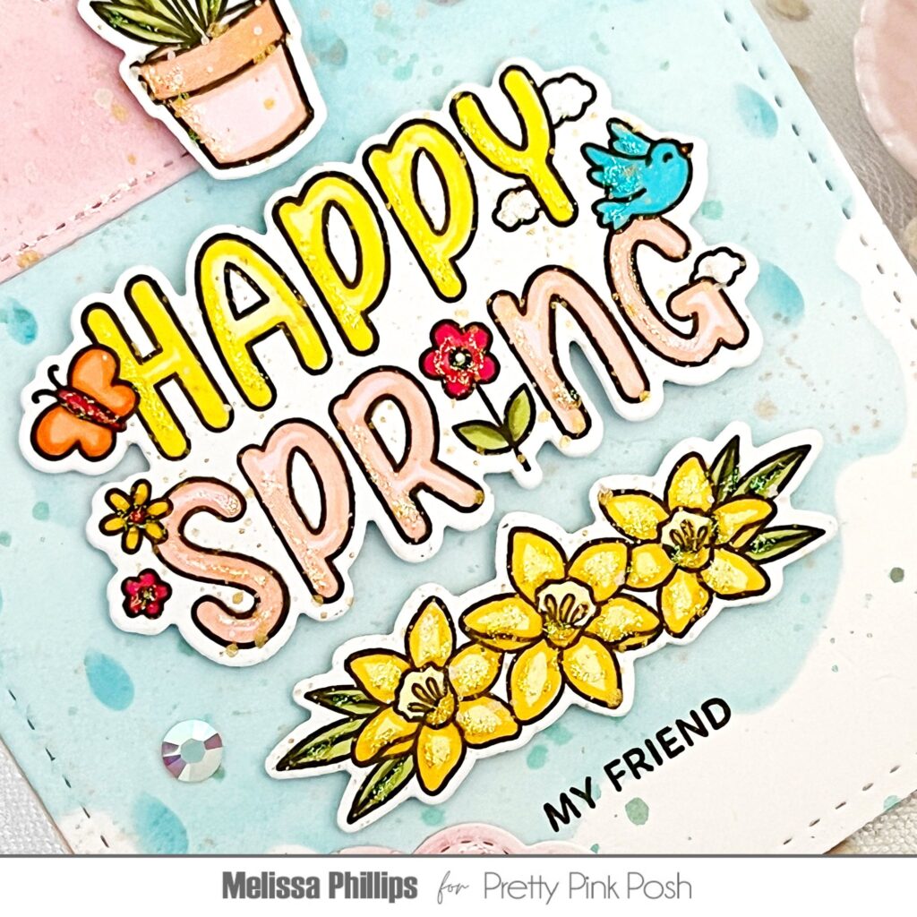 My sentiment also comes from the Spring Blooms stamp set and has a fun coordinating die that allows you to layer your sentiment over elements on your card front and really make it pop!