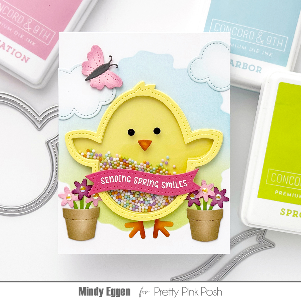 Hello friends! It’s Mindy Eggen here with you today, and I’m excited to share how I created this adorable Springtime Chick Shaker card.