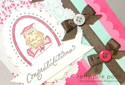 I had originally thought that I was going to do a purses and shoes card, but I saw the Graduation Owl in the drawer and couldn’t help but use it. This stamp is great for both girls and boys- however, it’s always more fun to make cards girlie!