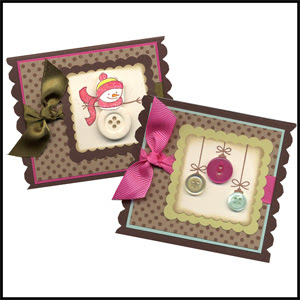 A while back I bought some plain white post-it notes with the intention of making covers for them. After receiving the Holiday Button Bits stamp set, I knew I couldn’t prolong this task any longer. Seriously….how cute are these stamps?! I decided to use the adorable snowman and the whimsical ornament stamps- aren’t they perfect for a cover?