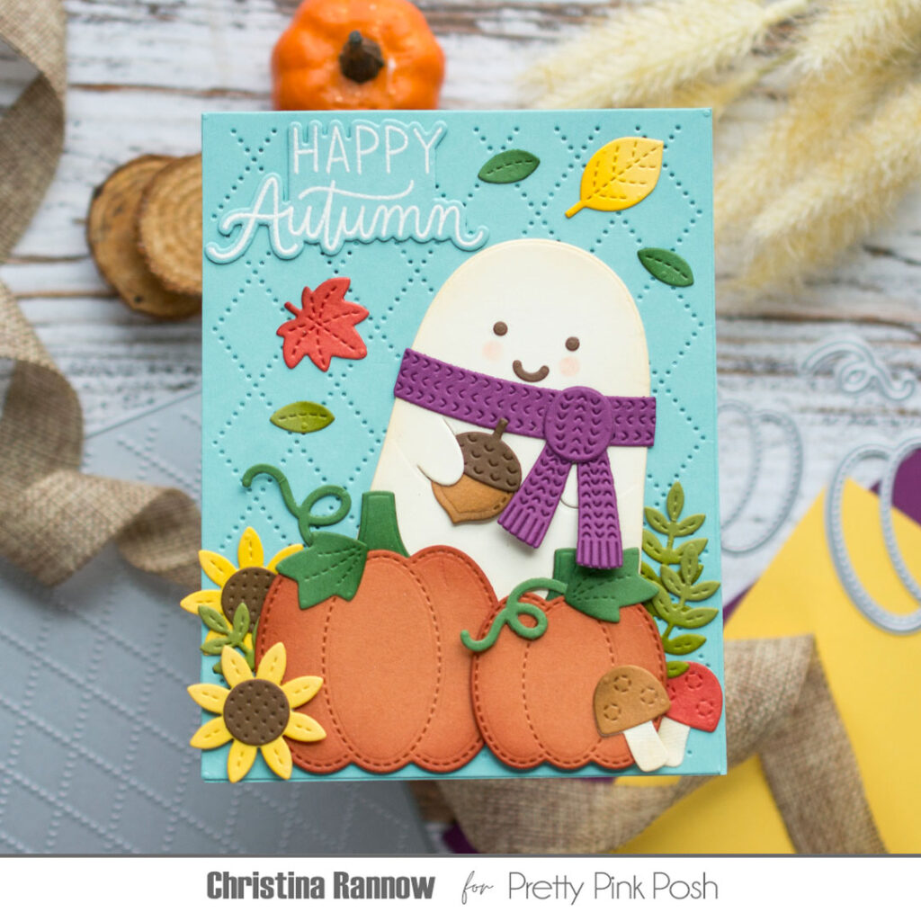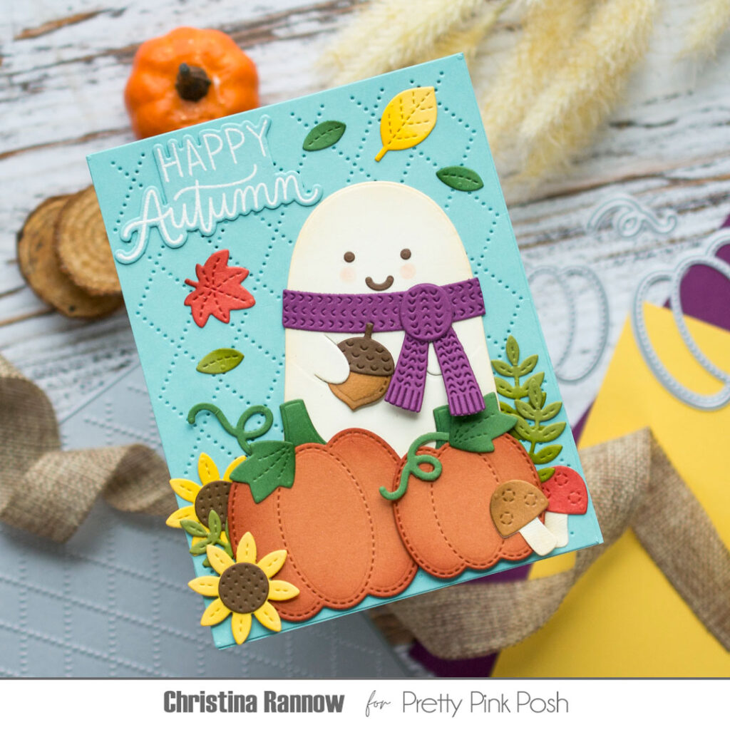 Hello friends, it’s Christina! I have a warm and cozy card to share with you today featuring some of my favorite fall die sets plus one of my favorites from the “Holder” collection- the adorable Ghost Holder. One of the best things about all the different “Holders” is how interchangeable they are, giving you endless creative possibilities! You can mix and match accessories and even switch up the season they were intended for, like I did here. This boo fits perfectly in this fall scene! Grab a warm drink, and let’s get started!