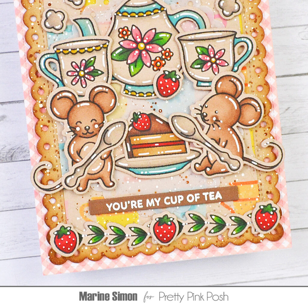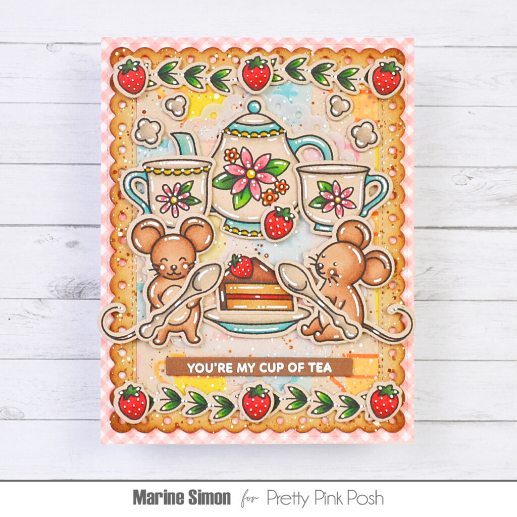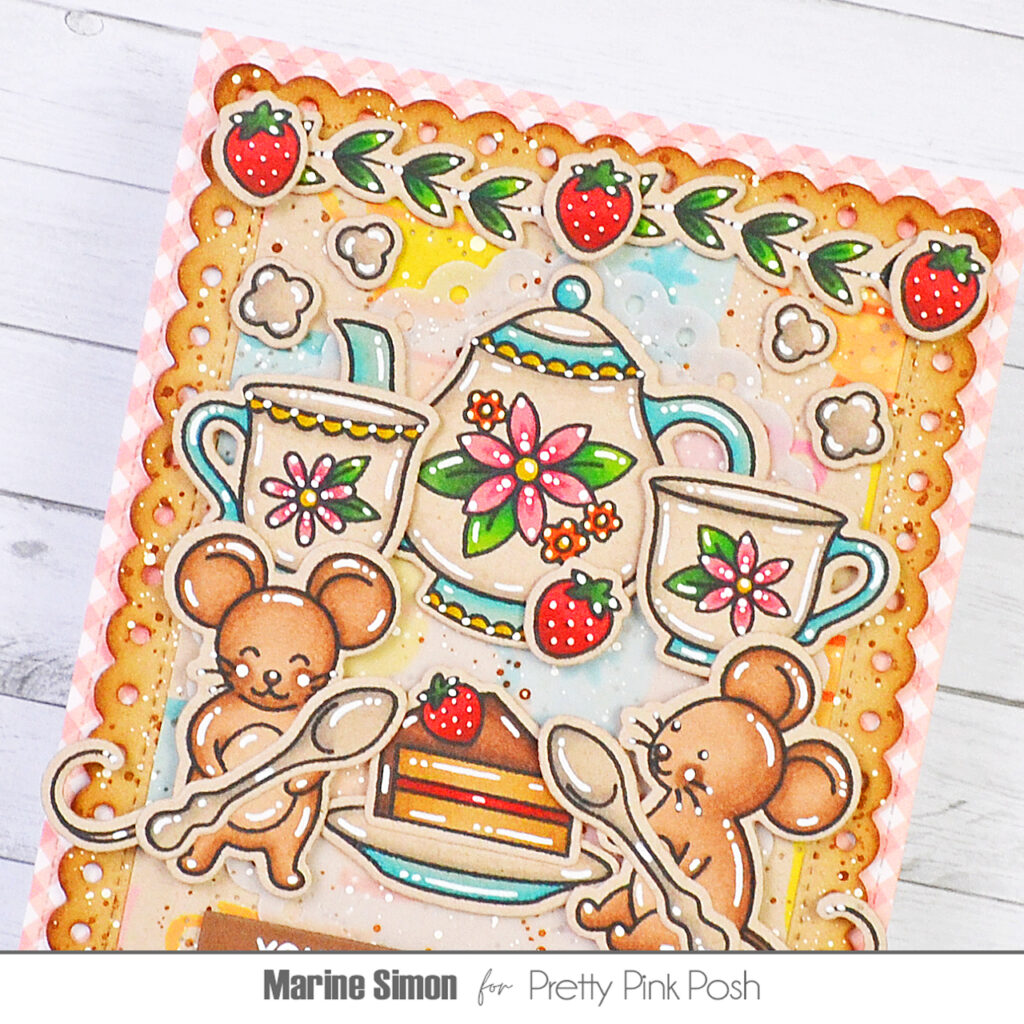 Hello crafty friends, Marine here with you today. I’m back with this extra cute little scene showcasing a mix of previously released products: a lovely tea party for two mousy friends.