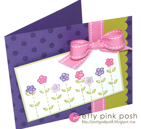 My very first thought when I think of girly is pink. It’s my favorite color and you just can’t go wrong with having pink on your cards. I added some pearls, a doily, rosette, sparkly buttons and even used a scallop card base. Each of these things are girly by themselves, but bring them together and you have a cards that oozes girly. {Honestly, I might have a hard time parting with this card}