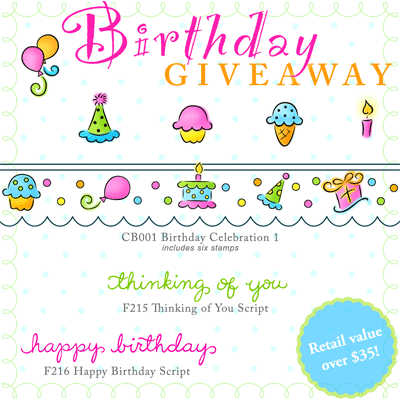 If you visited the DeNami blog this morning, you saw that we are highlighting our new birthday stamps. Oh my, these stamps are SO fun to use- I had a hard time putting them down! Good thing we have the Birthday Blog Hop coming up so I can pull these stamps out again soon. :)
