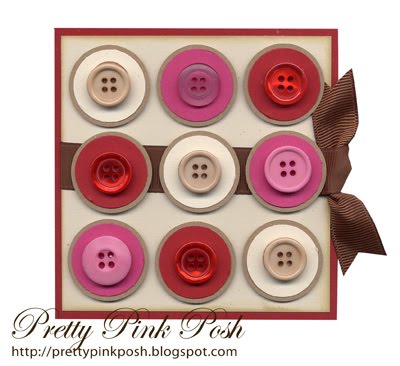 Other: Chocolate Brown grosgrain ribbon, 1″ circle punch, 1 1/8″ circle punch, Ruby Red Boutique Buttons, Sand Boutique Buttons, Raspberry Boutique Buttons