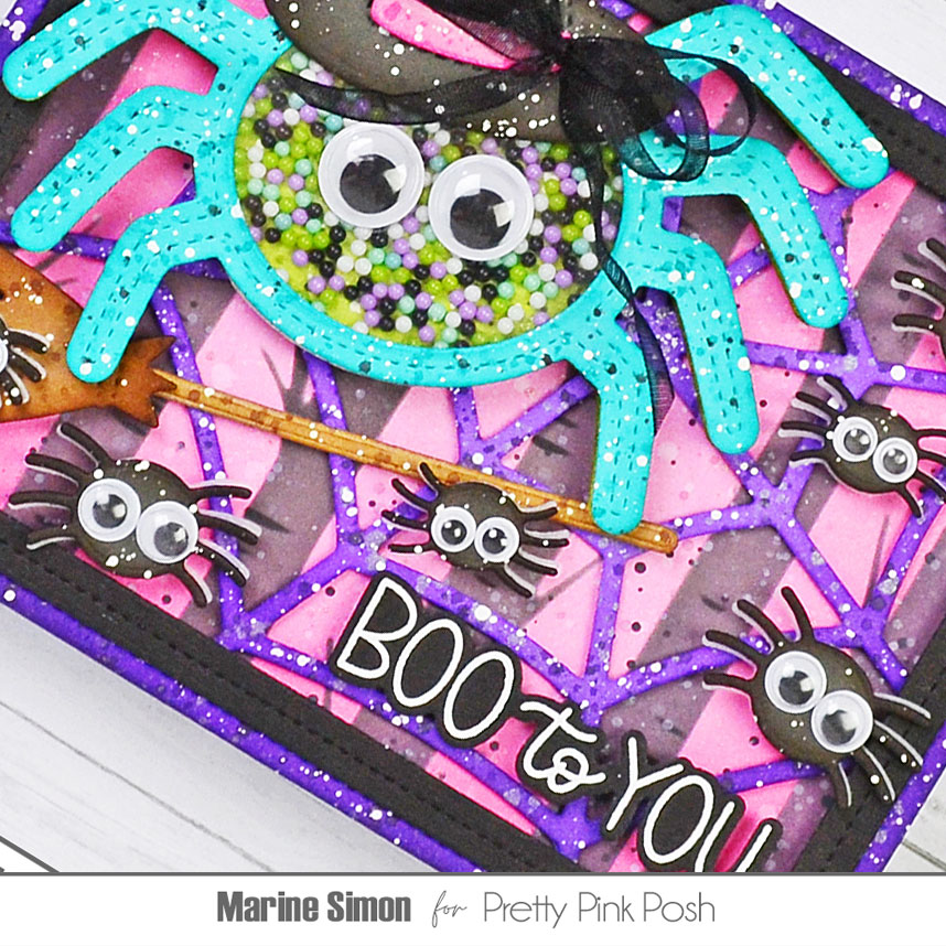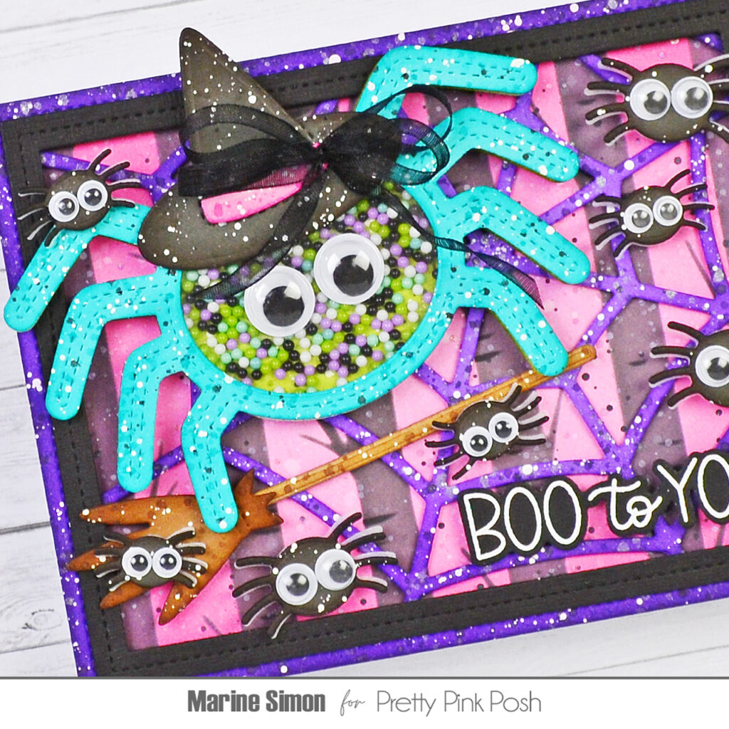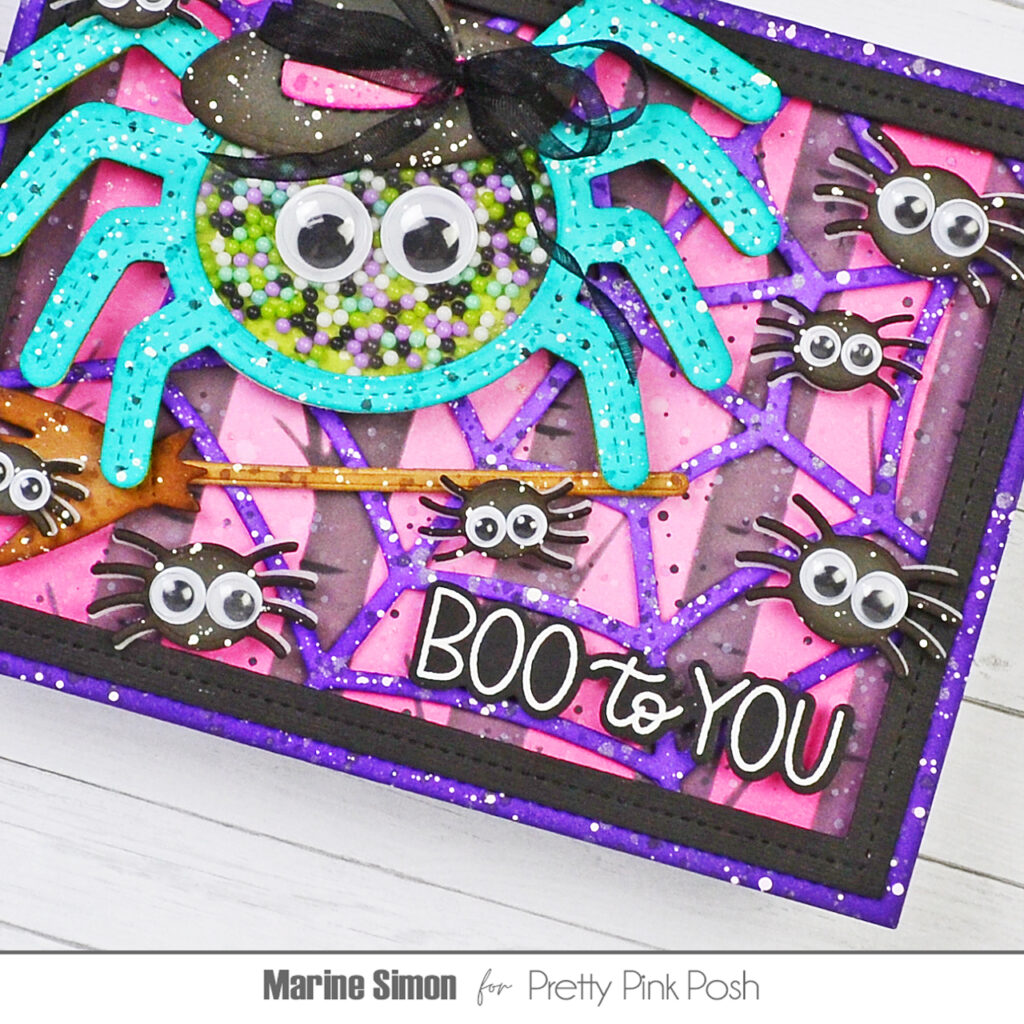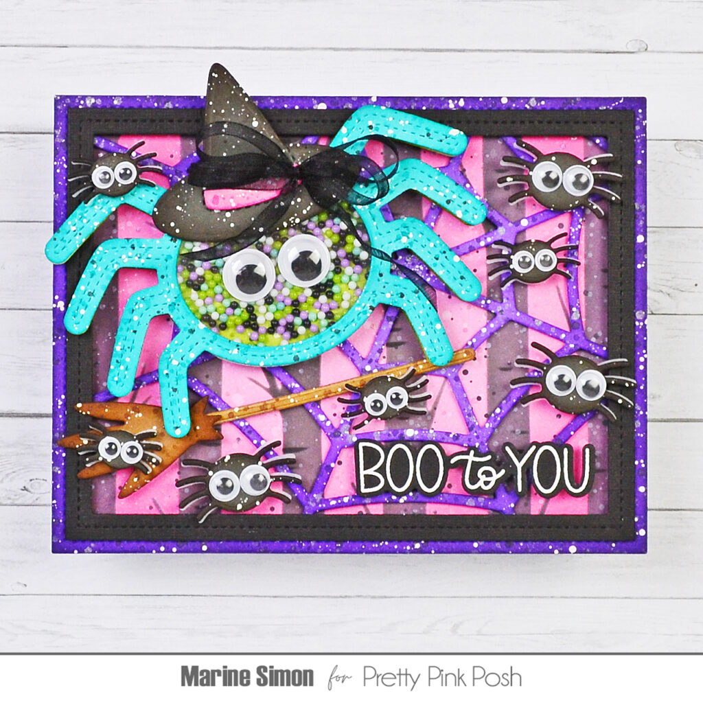 Hello crafty friends, Marine here, I’m happy to be back with this extra fun and spooky Halloween card showcasing some items from the August Release, including the amazing Spider Shaker die that I adore! I’m not a huge fan of spiders in real life, especially when they’re gigantic, but it’s impossible to hate them when they’re made out of paper and wearing fun wiggly eyes!