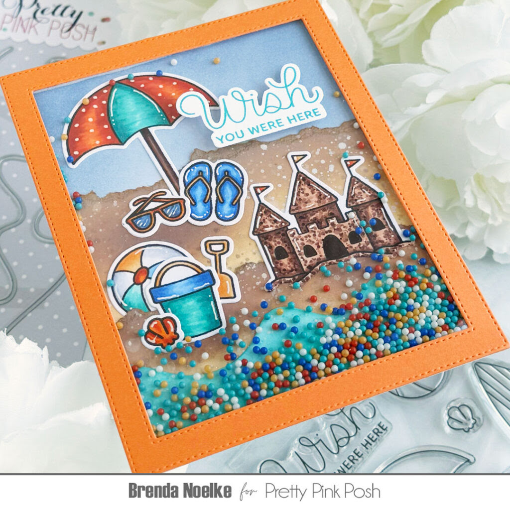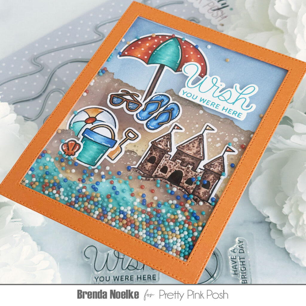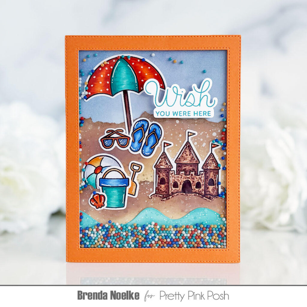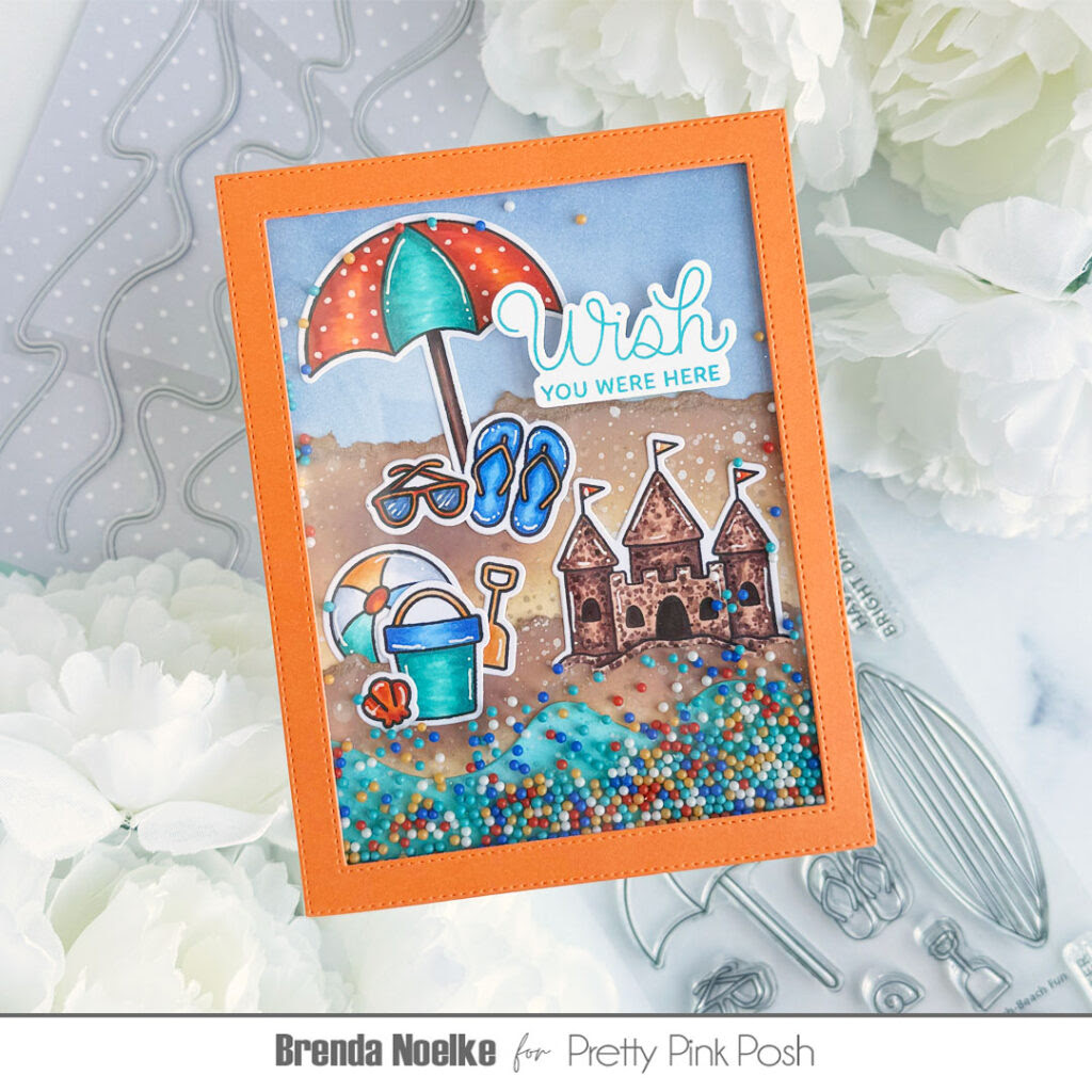 Behind the window, I added die cut waves and a sandy shoreline with the Shoreline Borders Die.
